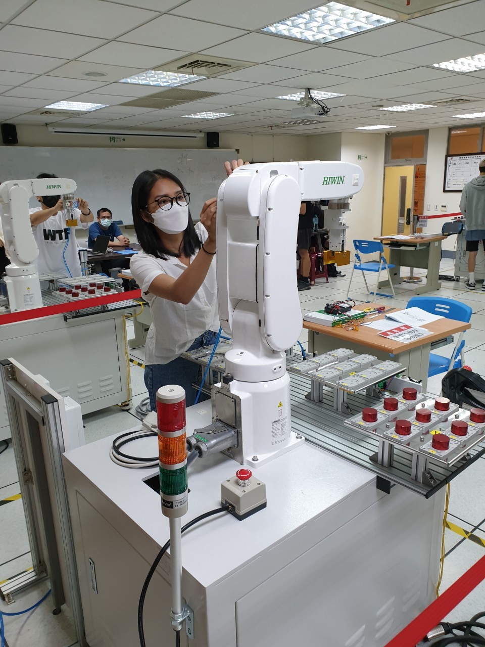 「國內外重要的智慧機械大廠,幾乎都跟我們有合作。」王建仁主任表示,智慧機器人工程系擁有羨煞他校的眾多儀器設備,包含全球機械手臂排名第一的Fanuc,就有一套六軸工業機械手臂供學生「做中學」;EPSON機械手臂與OMRON控制系統結合而來的機器人系統整合多元應用,讓學生從編程到維修都能一條龍學習;此外,德國FESTO Didactic基於工業標準規格所建置的教學設備,包含機電控制訓練用的MPS(模組化生產系統)等,更可以讓學生與國際標準接軌。 其他國內大廠像是啟碁、上銀、群創、友達、晶元光電等,也都與智慧機器人工程系有密切的產學合作,有的是將學生送進廠區現場,透過實習增加實戰經驗;有的則是直接在校內開設專班,讓在職同仁與在校學生一起學習。 以啟碁為例,為了加速產線的智慧化及自動化,啟碁連續2年與智慧機器人工程系開設產學合作專班,而今年的「FlexSim訓練課程」將為啟碁邁向「工業4.0智慧產線」奠定堅實基礎,因此前來參訓的26位同仁,未來也會成為種子教練,負責把訓練成果帶到全球各廠。 挾著豐富的教學資源,以及豪華的產學合作對象,智慧機器人工程系的同學不僅是畢業即就業,更重要的是從實習開始就能領取優渥薪資,一旦獲得留用,起薪更有機會優於一般新鮮人,而能夠讓學生脫穎而出,受到企業青睞,並且待遇高人一等的主要關鍵,王主任直言「就是考取iPAS證照」。